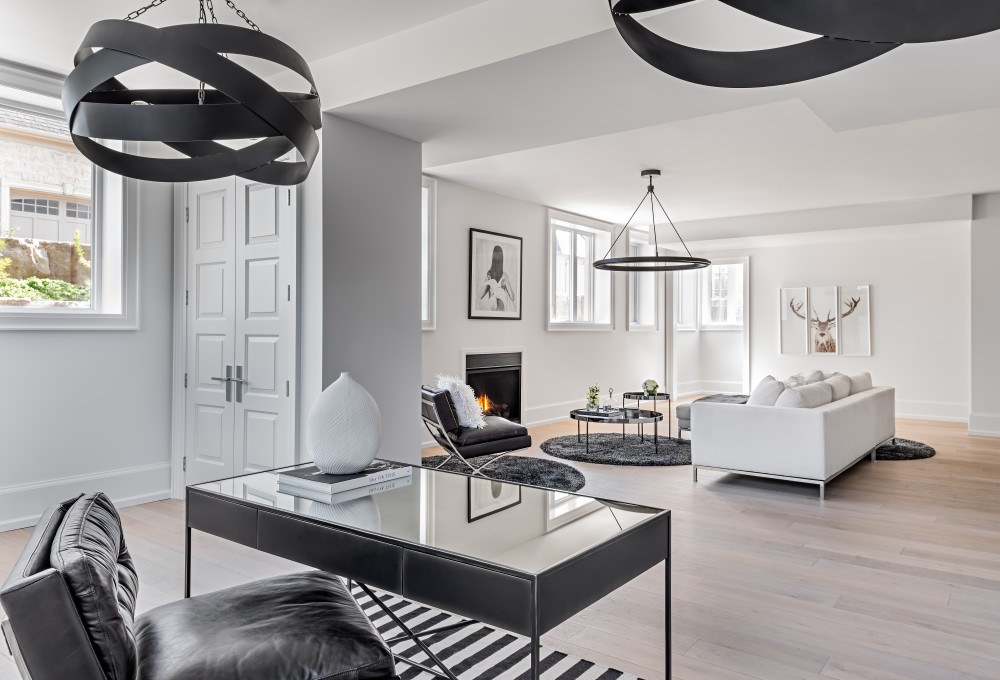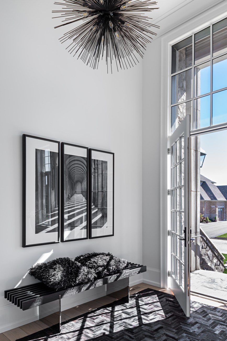 Taken back to a time of natural stone exteriors, plank floors, high ceilings and tall, solid interior doors with transoms. Floor to ceiling windows, mouldings and archways fuse seamlessly with modern clean lines blended in whites and blacks.